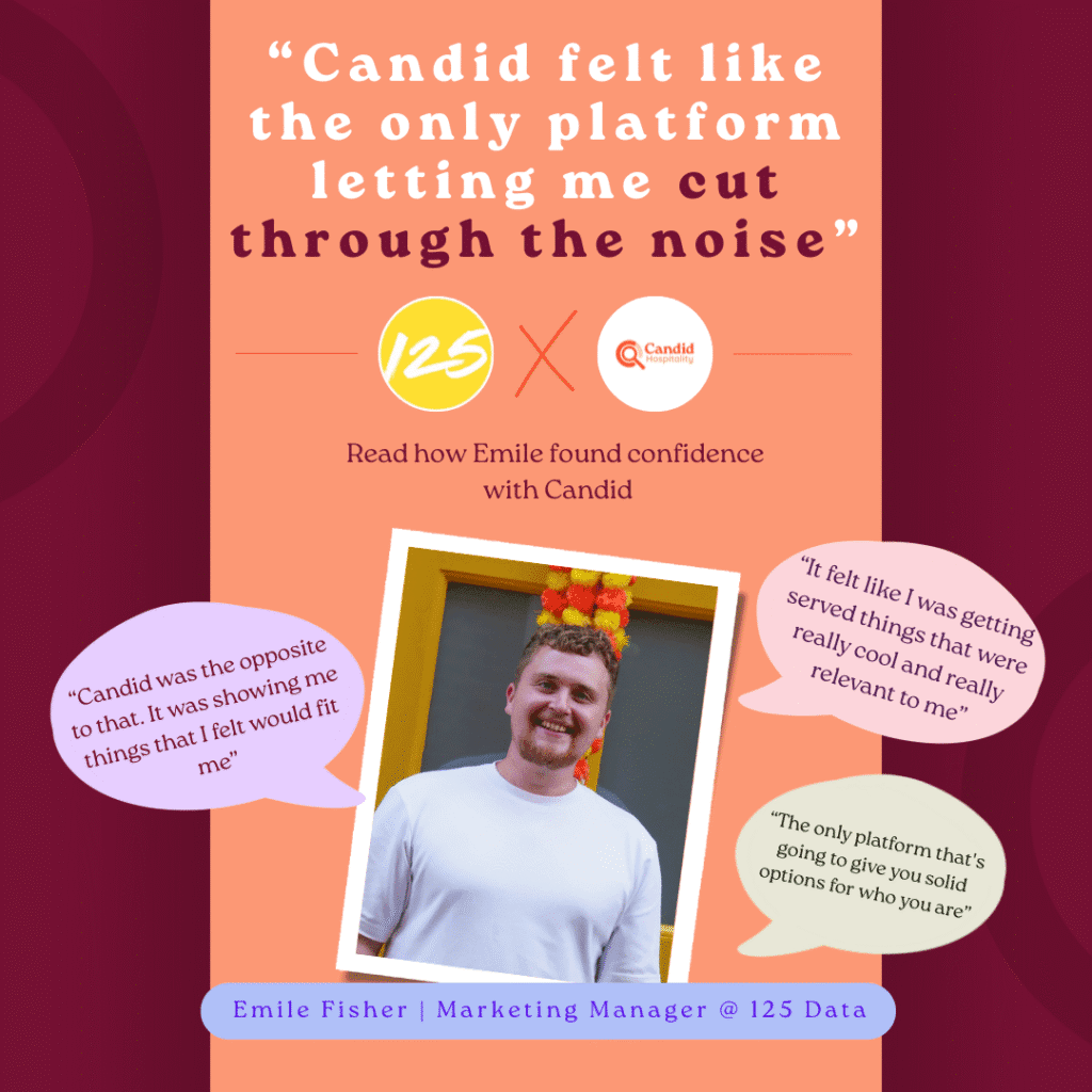 “ I thought it felt like I was getting served things that were really cool and really relevant to me. Instead of me spending hours digging and crawling through the noise of everything ‘hospitality’. Candid was the opposite to that. It was showing me things that I felt would fit me.”